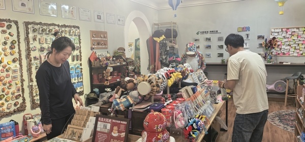 特色文创产品也为小镇旅游添了“文化味”。在“南横北道”文创店,00后设计师孙国旭的原创作品成了游客青睐的“伴手礼”,店内货架上,印着横道河子中东铁路机车、百年木刻楞建筑、东北虎林园等景点特色冰箱贴错落摆放,横道各大景点明信片、人工手绣“雪人”、“手包”等格外吸睛。
